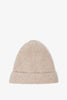 Beige cashmere beanie from The Row. The Leomir beanie is made in textured alpaca and cashmere bouclé with ribbed construction and clean finish.