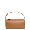 Taupe leather mini bag from The Row. The 90’s taupe leather bag is made of smooth nappa leather with golden detailing, softly rounded edges, leather piping and is complete with adjustable slim leather strap.