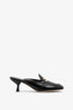 Black leather mules from Ferragamo. The Elodye mules are made of calfskin leather, featuring a double stitched trim along with a golden custom buckle across the instep. It has an elongated tip, set on a slim stiletto heel measuring 55mm.