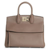 Grey leather tote bag from Ferragamo. The Studio tote has a a sophisticated design and lined in leather, an updated Gancini closure and a studded bottom as well as a removable shoulder/cross-body strap.