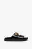 Black leather slide sandals from Givenchy. The 4G Liquid flat mules are made in calfskin leather, featuring an adjustable leather strap and a 4G liquid metal buckle.Rubber sole