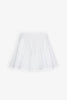 White skater skirt from Alaïa. The Fine knit skater skirt is made in fine knit in a flare cut, with a low waist with a thin waistband and voluminous ruffles.