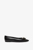 Black leather ballet flats from Ferragamo. The Zea ballet flats are made of black leather, featuring the signature bow at the pointed toe, a golden logo-engraved buckle and padded footbed. The heel measures 0.5cm.