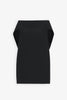 Black off-the-shoulder top in heavy virgin wool crepe with center back pleat, angled back hem and side seam pockets.