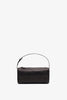 Dark brown leather mini bag from The Row. The 90's brown leather bag is made of leather with silver detailing, softly rounded edges, leather piping and is complete with adjustable slim leather strap.