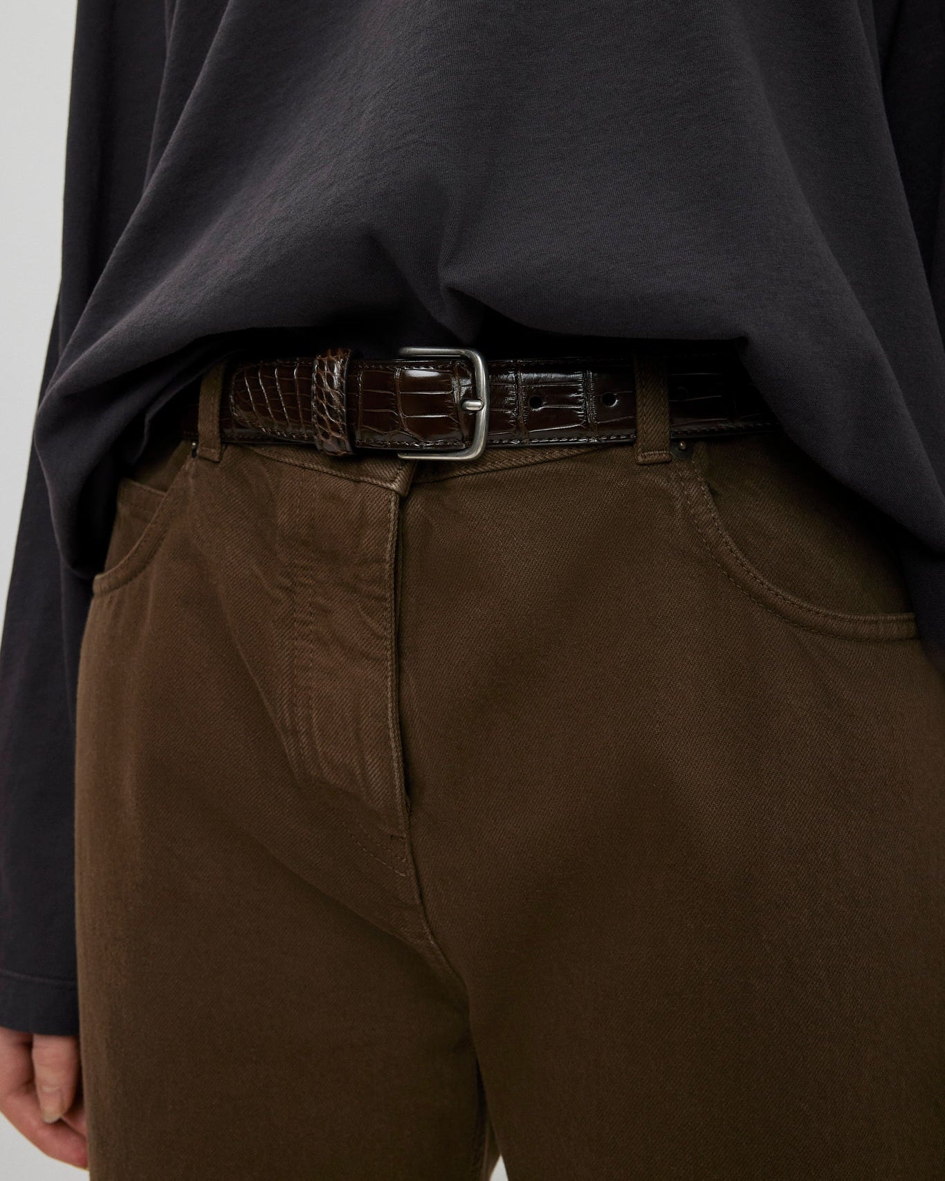 Cord brown silver buckle belt