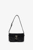 Black glitter shoulder bag from Jimmy Choo. The Avenue mini bag is made of black satin covered in glitter and crystal fringe. It has a streamlined silhouette, the signature JC emblem, complete with an adjustable shoulder strap and magnetic fastening.