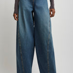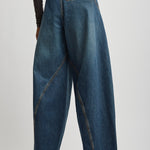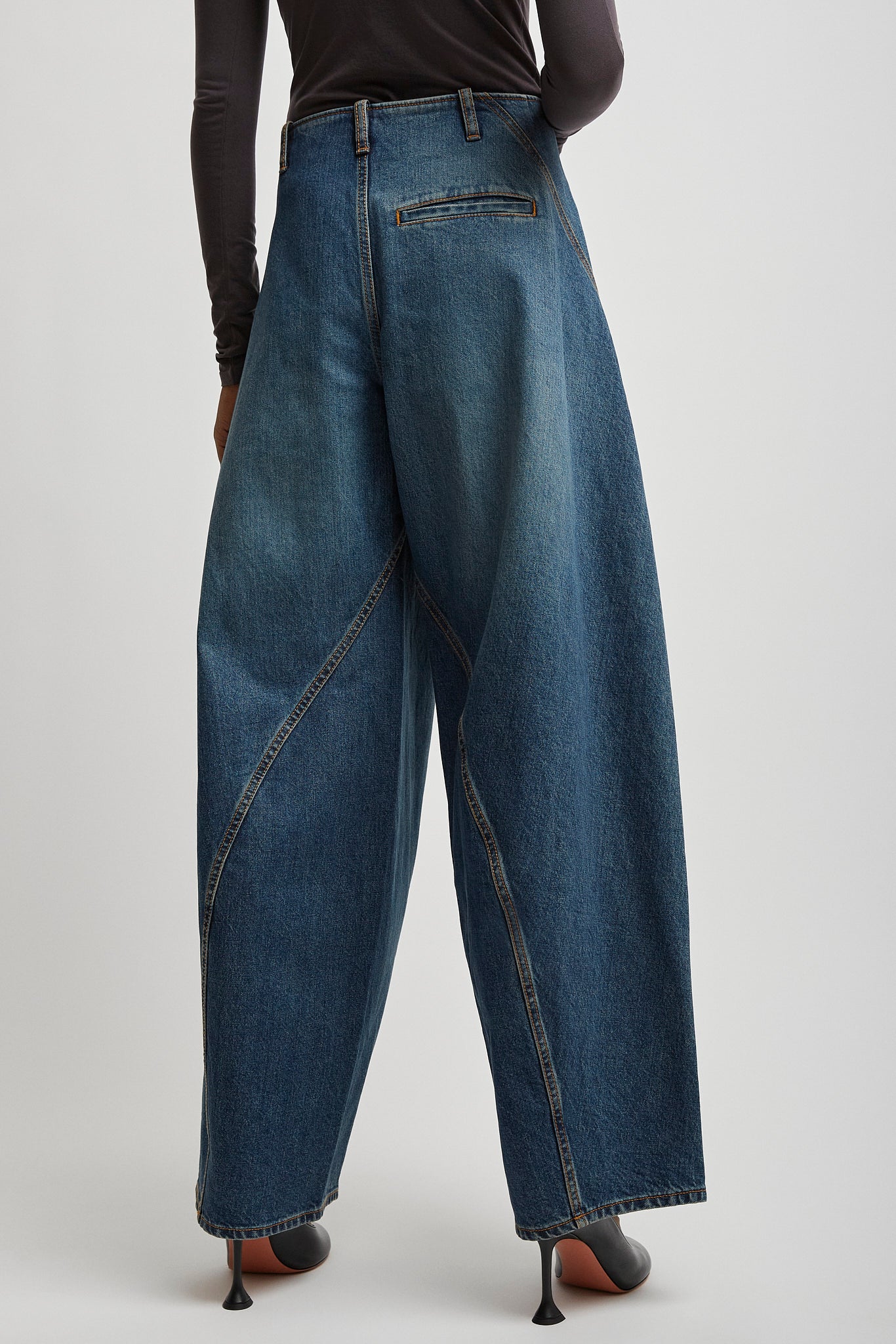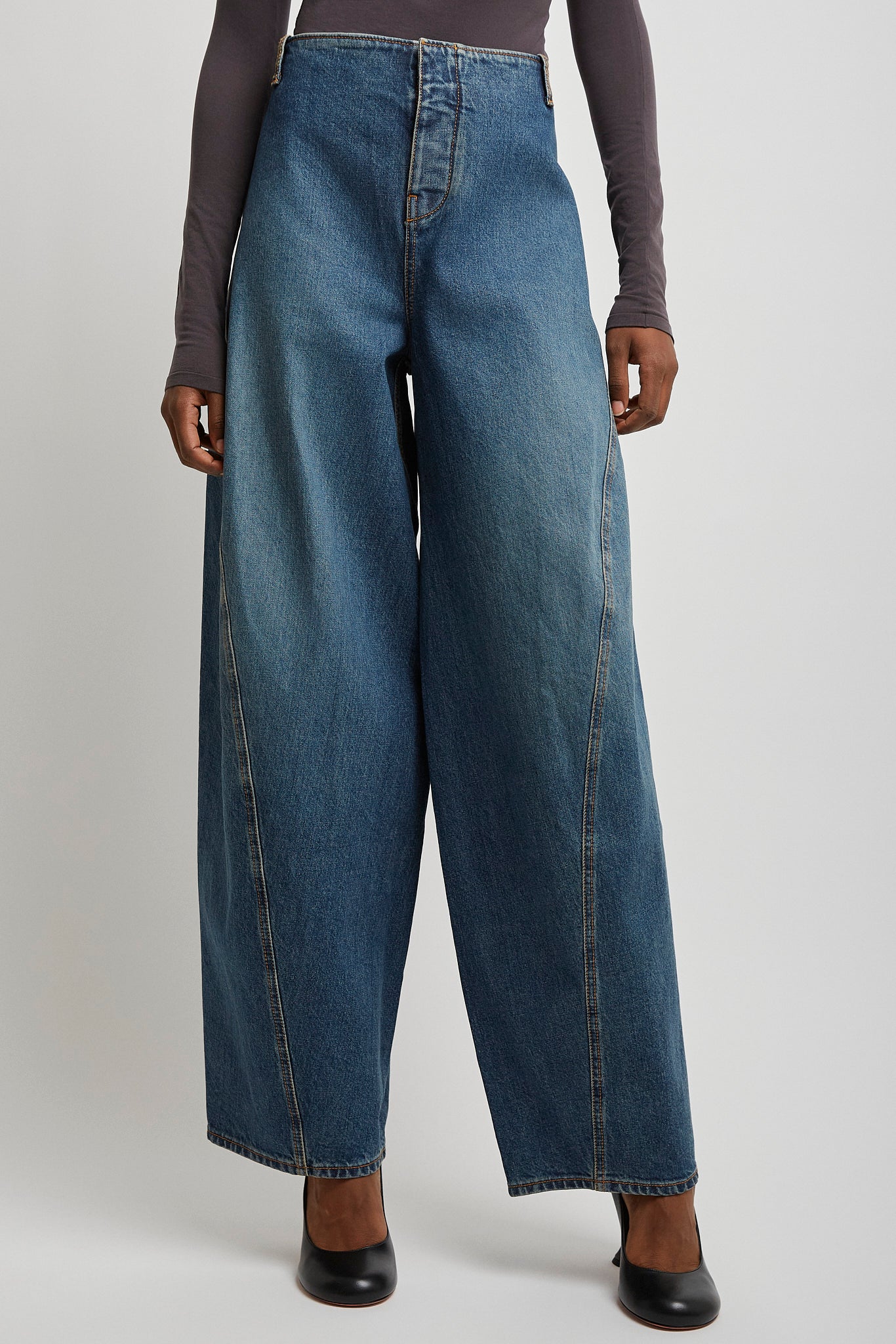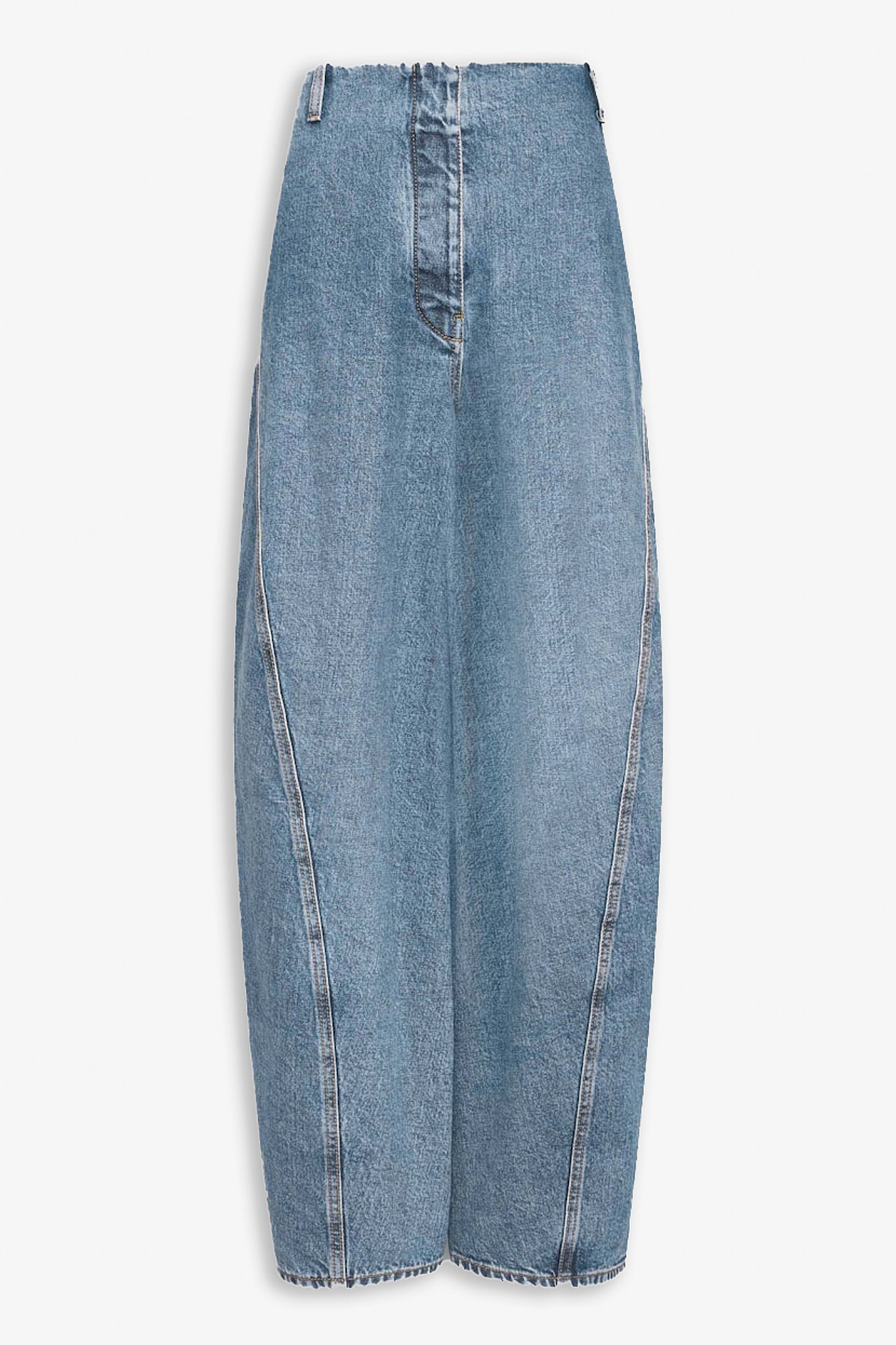 Blue denim cargo pants from Alaïa. The Denim cargo pants has a barrel fit and are made in vintage effect washed denim with a low waist, full leg and zipper closure.