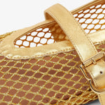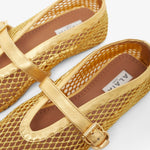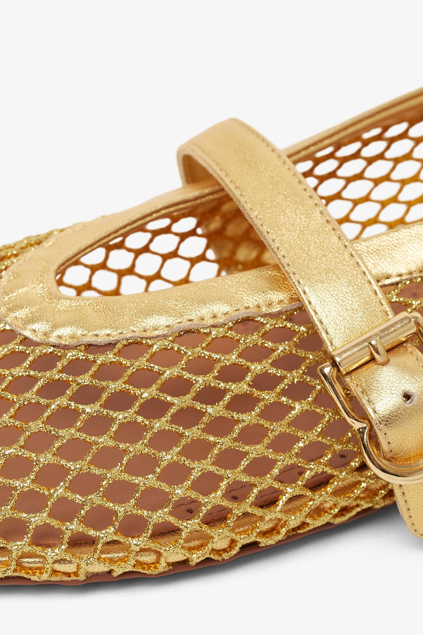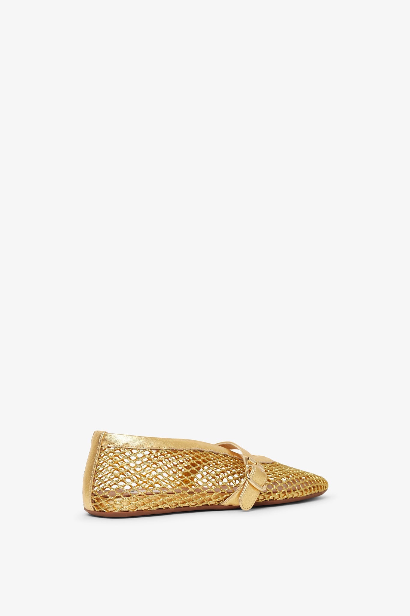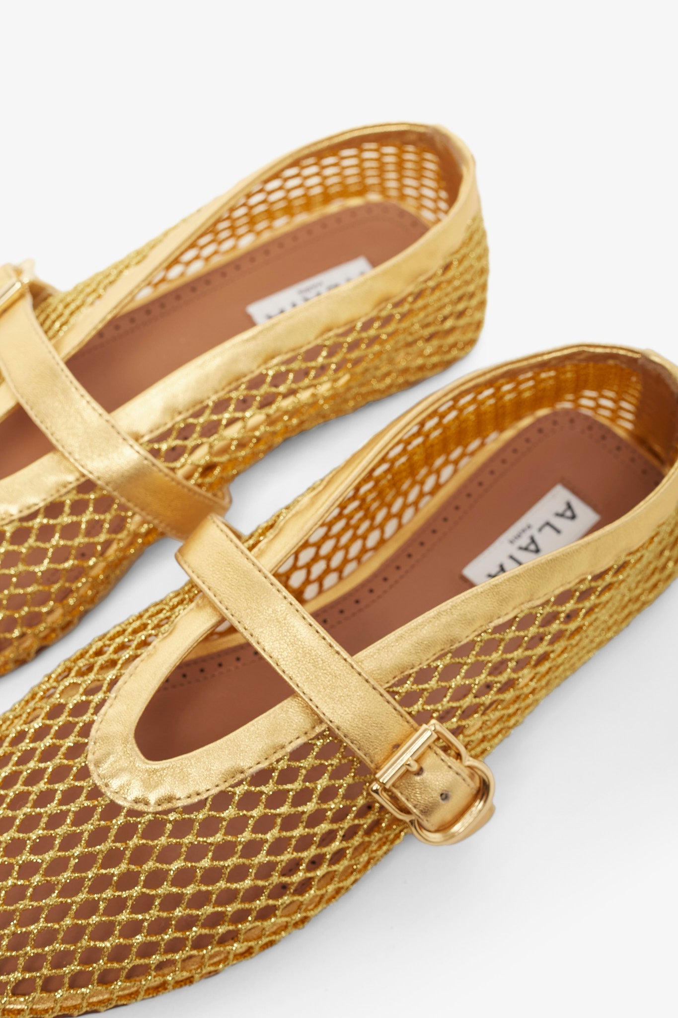 Gold mesh ballet flats from Alaïa. The Silver mesh ballet flats are made of mesh featuring an a-line front, rubber printed Vienne sole complete with a strap fastening at the top.