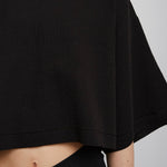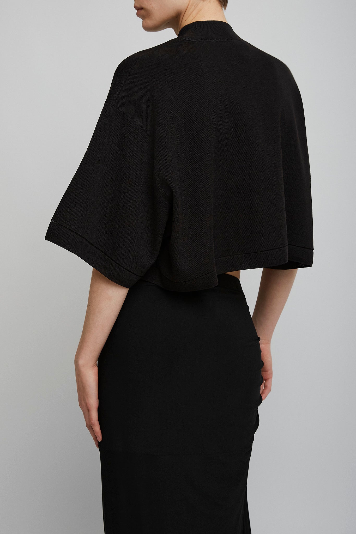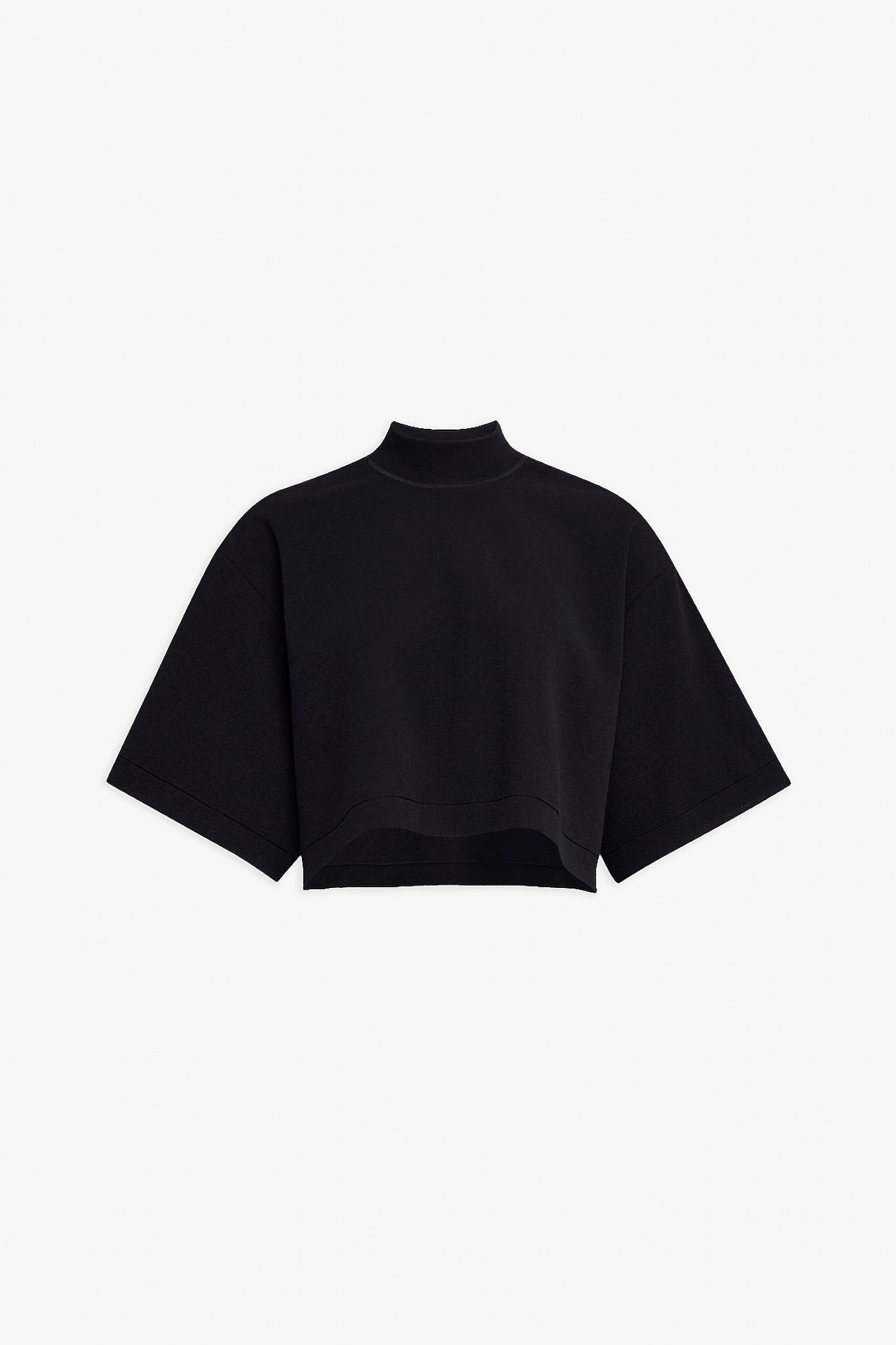 Black loose fit T-shirt, knitted from a light weight cotton with mock neck and square short sleeves.