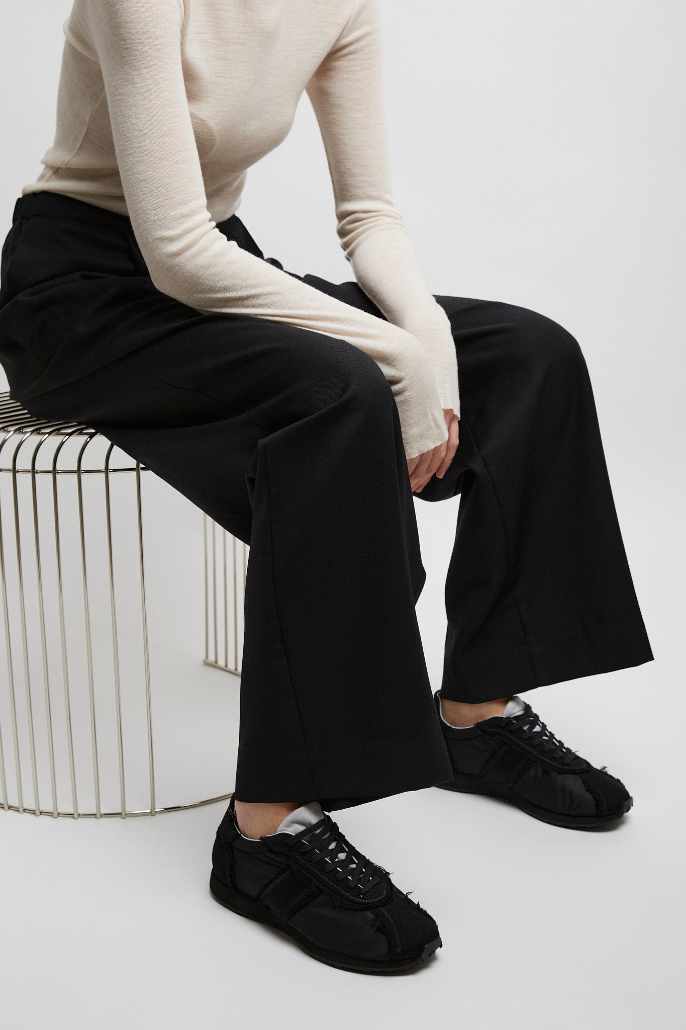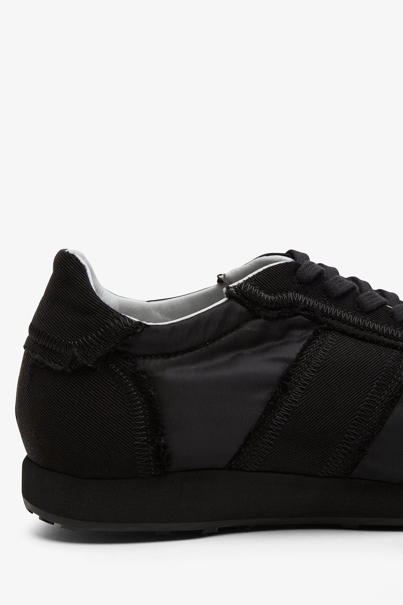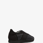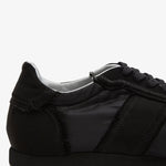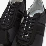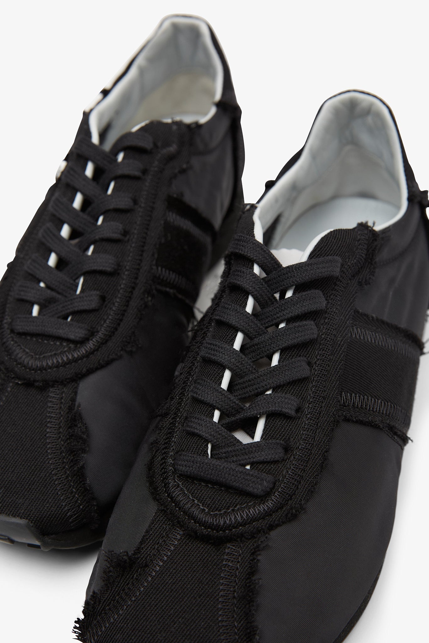 Black and light grey fabric sneakers from The Row. The Mica sneakers are made of black technical fabric and light grey leather, complete with tone-on-tone stitching, an almond-shaped toe, classic lacing system, cushioned sole with micro rubber tread. Nappa leather lining inside.