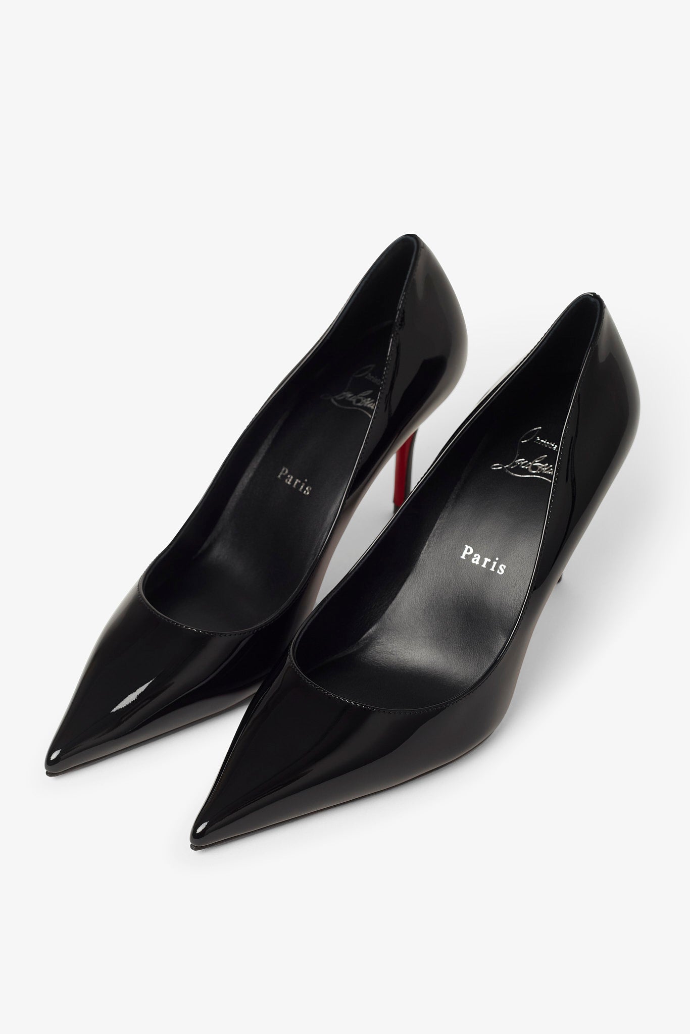 Black patent leather pumps from Christian Louboutin. The Miss Z pumps are made of black patent calf leather in a tapered silhouette featuring a padded insole and is set on a 80 mm stiletto heel. This model features a new 'Everlasting Red Sole' that ensures resistance and lasting vibrancy for the signature Louboutin red.